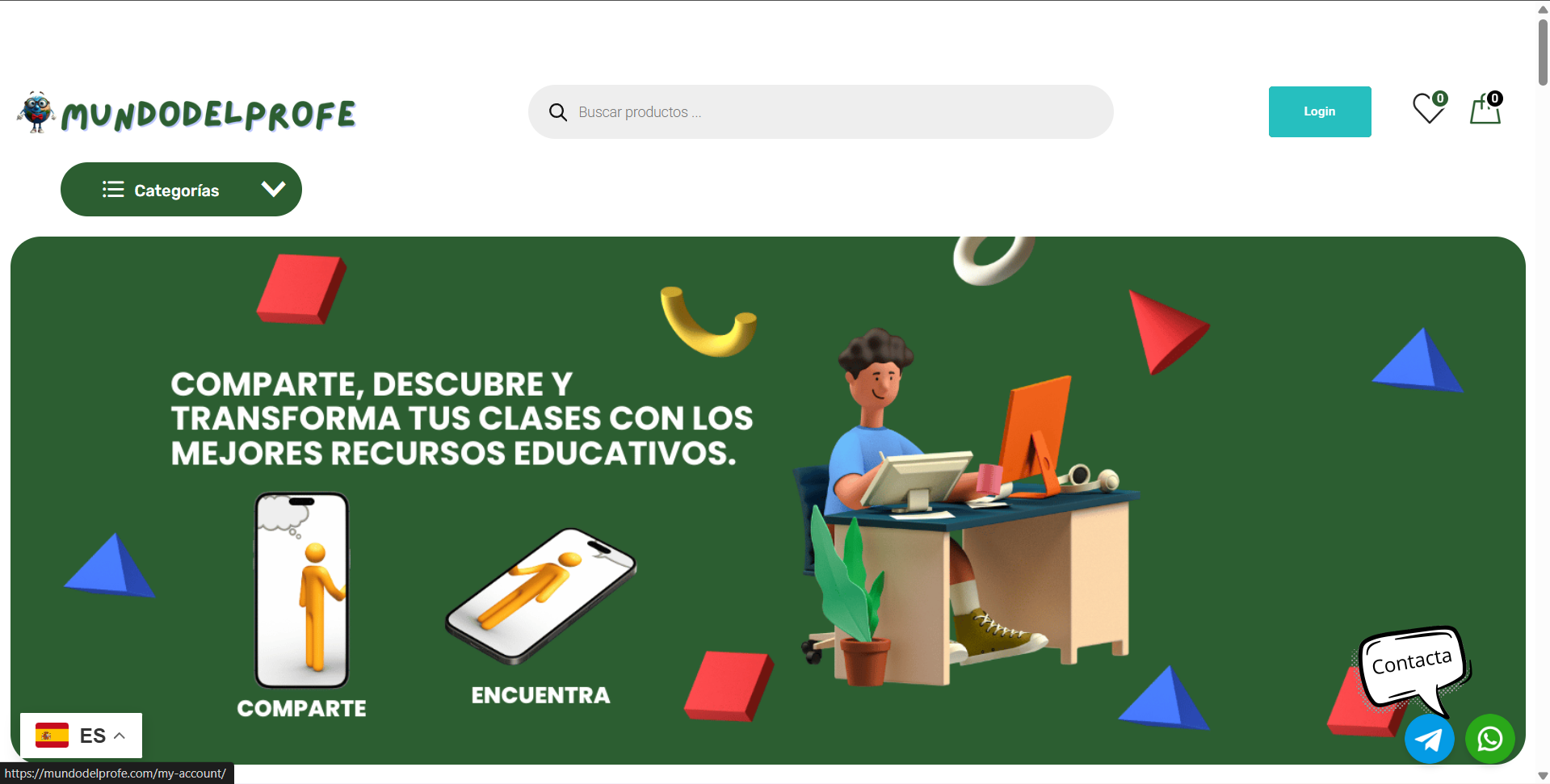 Entra en la web mundodelprofe.com. En la parte superior derecha, verás un botón que dice “Login” (o el icono de usuario). Haz clic ahí para empezar.
