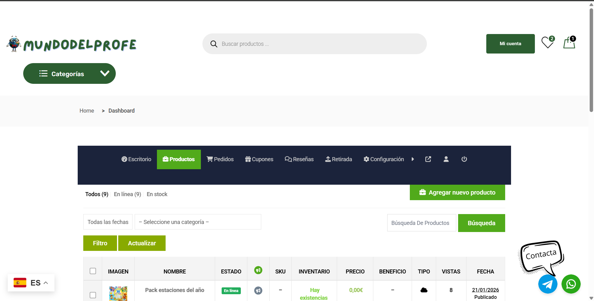 1. Vuelve a entrar en la sección de Productos de tu panel de vendedor.