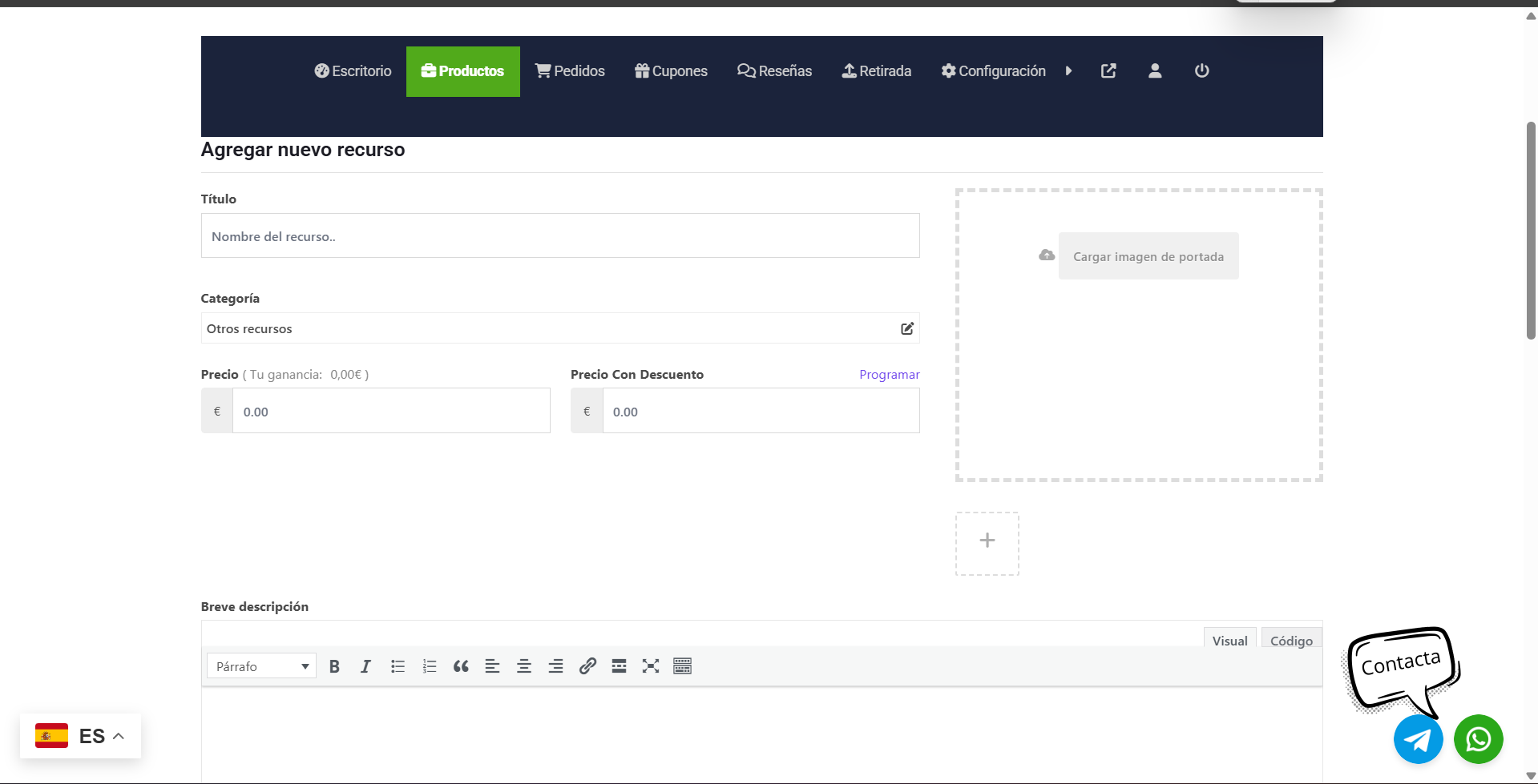 Al pulsar el botón, se abrirá una ventana emergente. Es el momento de poner guapo tu producto. Sigue estos pasos para no dejarte nada: