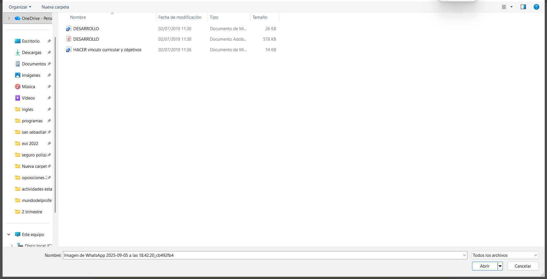 Se abrirá un recuadro nuevo. Aquí es donde le das nombre a tu archivo (ej: “Cuaderno PDF”). A continuación, pulsa en el botón para buscar tu documento. Nota: Si tu archivo pesa muchísimo, aquí también podrías pegar directamente un enlace de Google Drive, pero lo normal es pulsar el botón para subirlo.