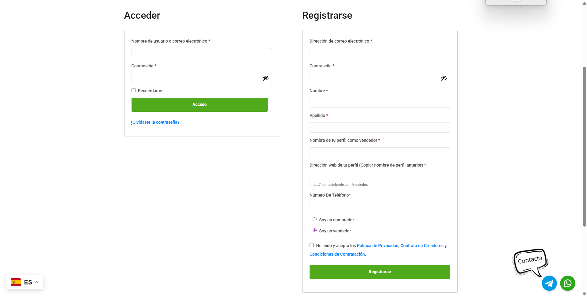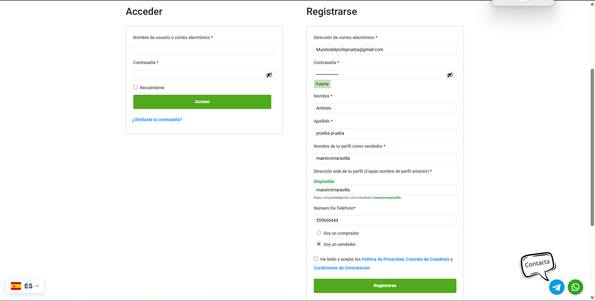 Paso 2: Rellena tus datos y elige “Vendedor”