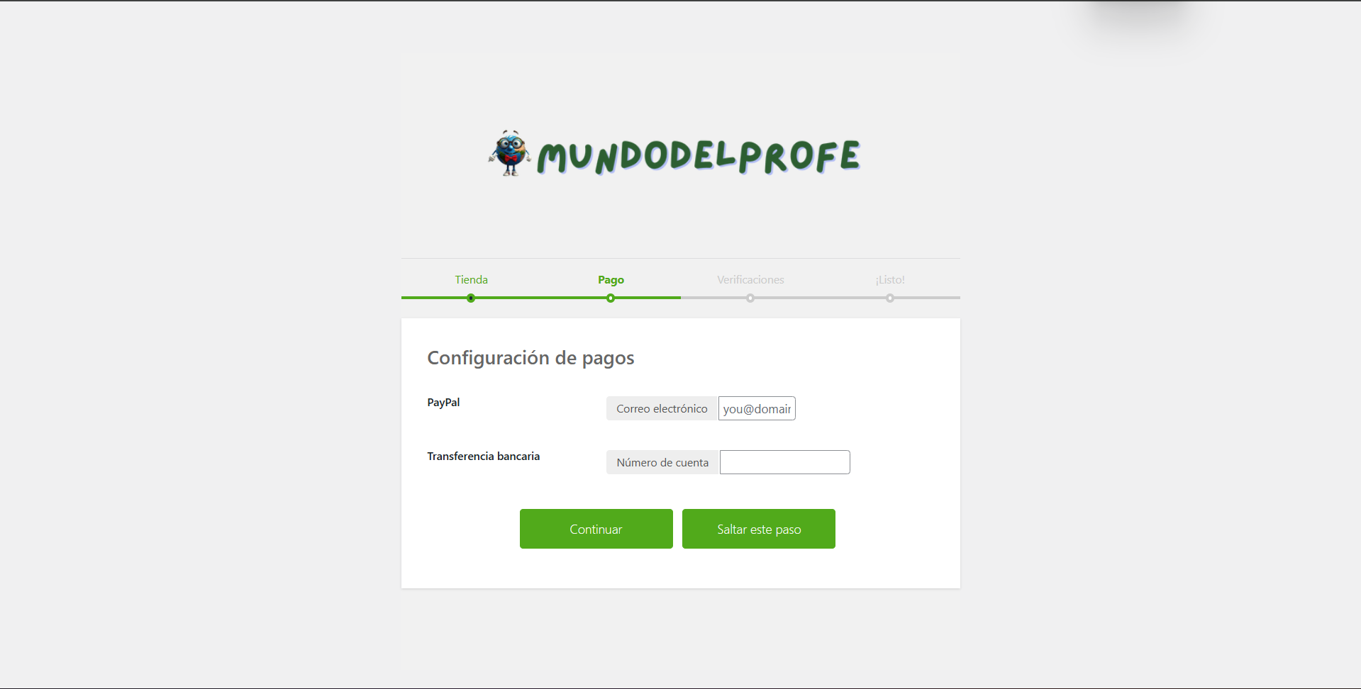 Ahora toca elegir cómo recibirás tus ganancias. Puedes poner tu correo de PayPal o tu número de cuenta para Transferencia bancaria. Rellena el que prefieras y dale a “Continuar”.