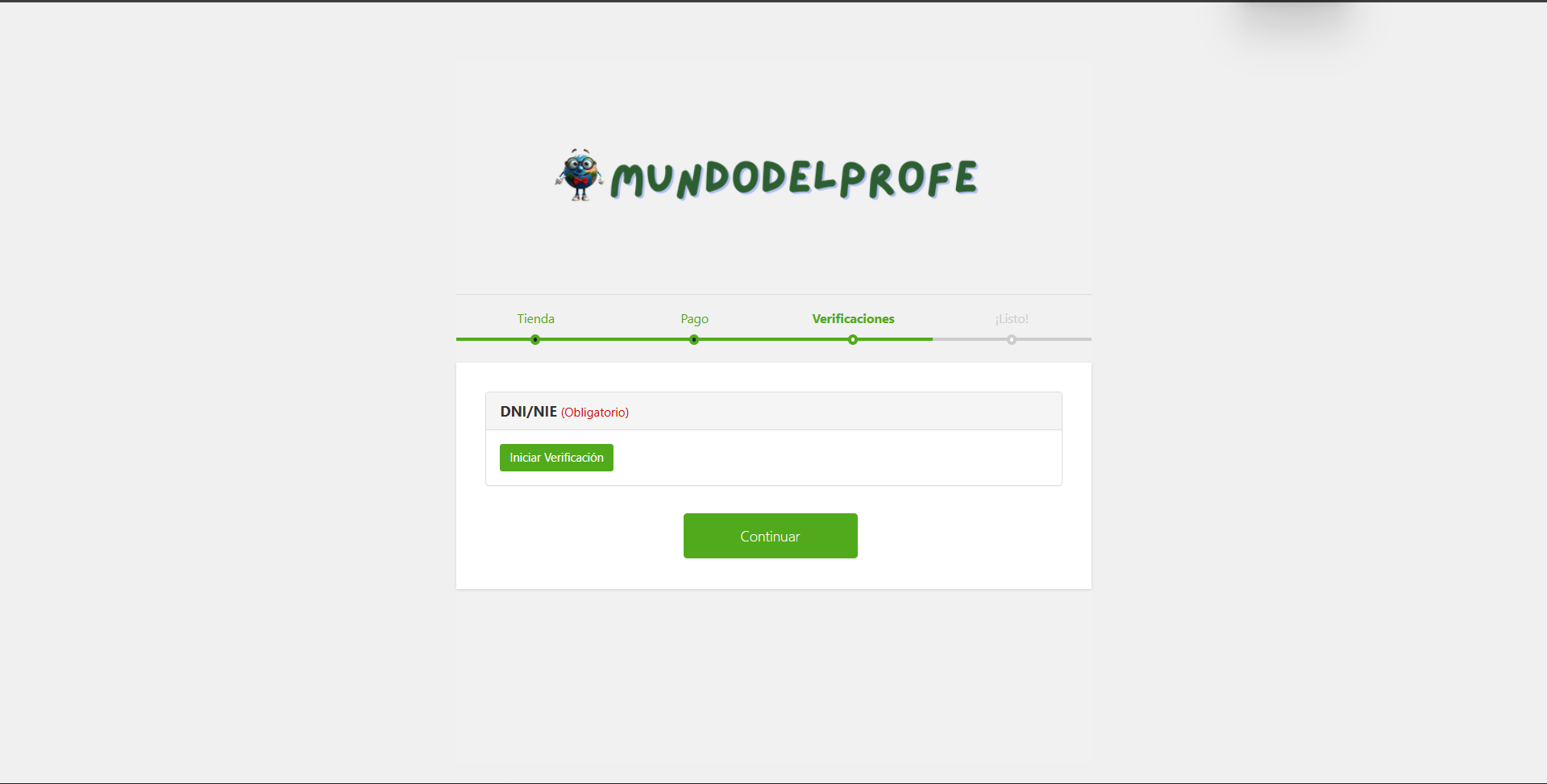 Para mantener la seguridad de la comunidad, el sistema te pedirá verificar tu identidad (DNI/NIE). Pulsa en el botón “Iniciar Verificación” para subir el documento si te lo pide, o simplemente pulsa “Continuar” para seguir adelante.