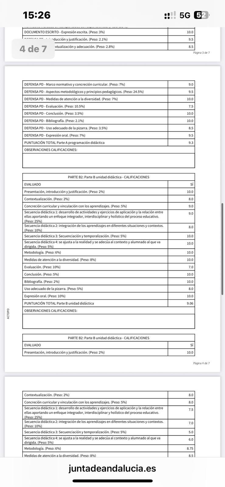 • PROGRAMACIÓN DIDÁCTICA: 9,7 en 2019, 9,6 en 2022 y 9,3 en 2025