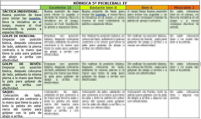 Situación de aprendizaje PICKLEBALL en 4º, 5º y 6º Primaria: incluye sesiones con juegos, objetivos, instrumentos de evaluación (rúbrica, coevaluación intergrupal, diana de autoevaluación, producto final y ficha de final de la unidad). Varios documentos son editables.